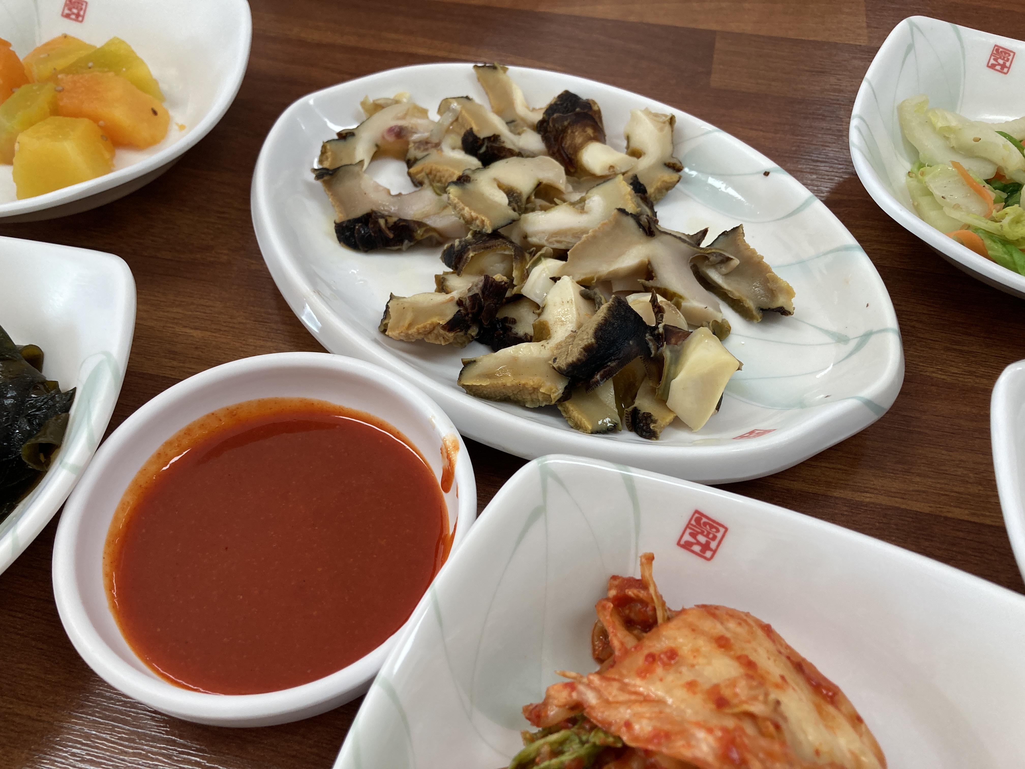 데친 소라도 나왔습니다. 초장에 찍어도, 안 찍어도 맛있었습니다. 쫄깃하고 약간 은은한 달큰함~