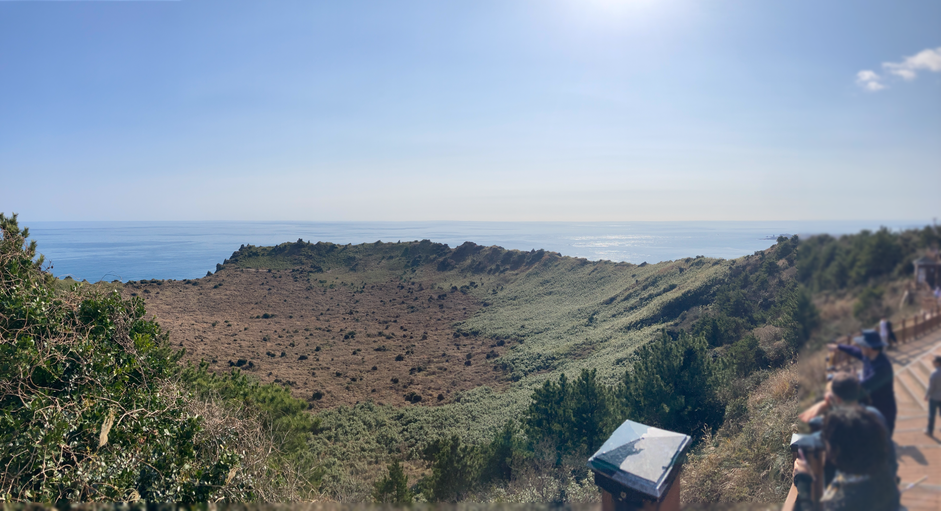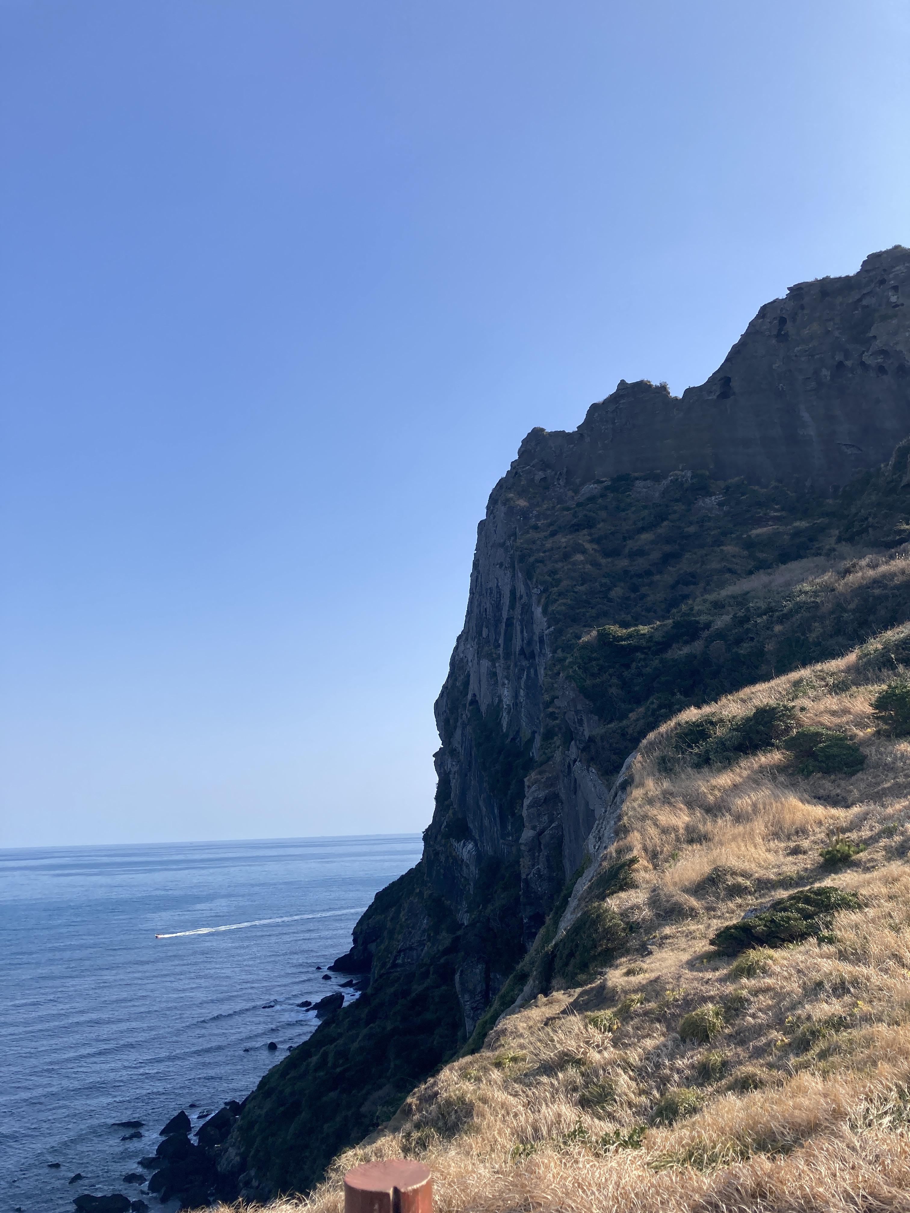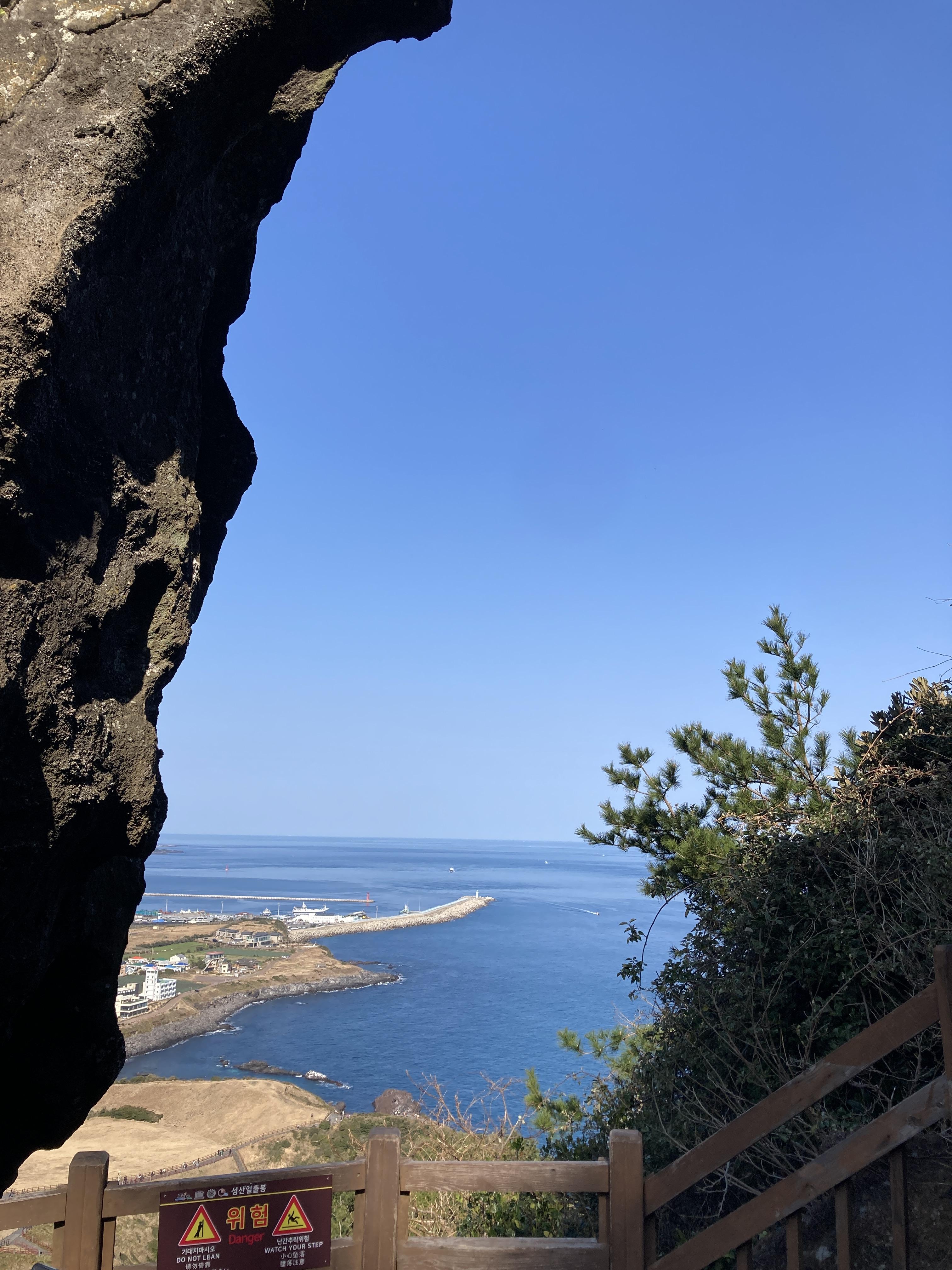 푸른하늘과 푸른바다를 보며 무릎이 열일한 끝에...! 일출봉 정상에 도달했습니다.!