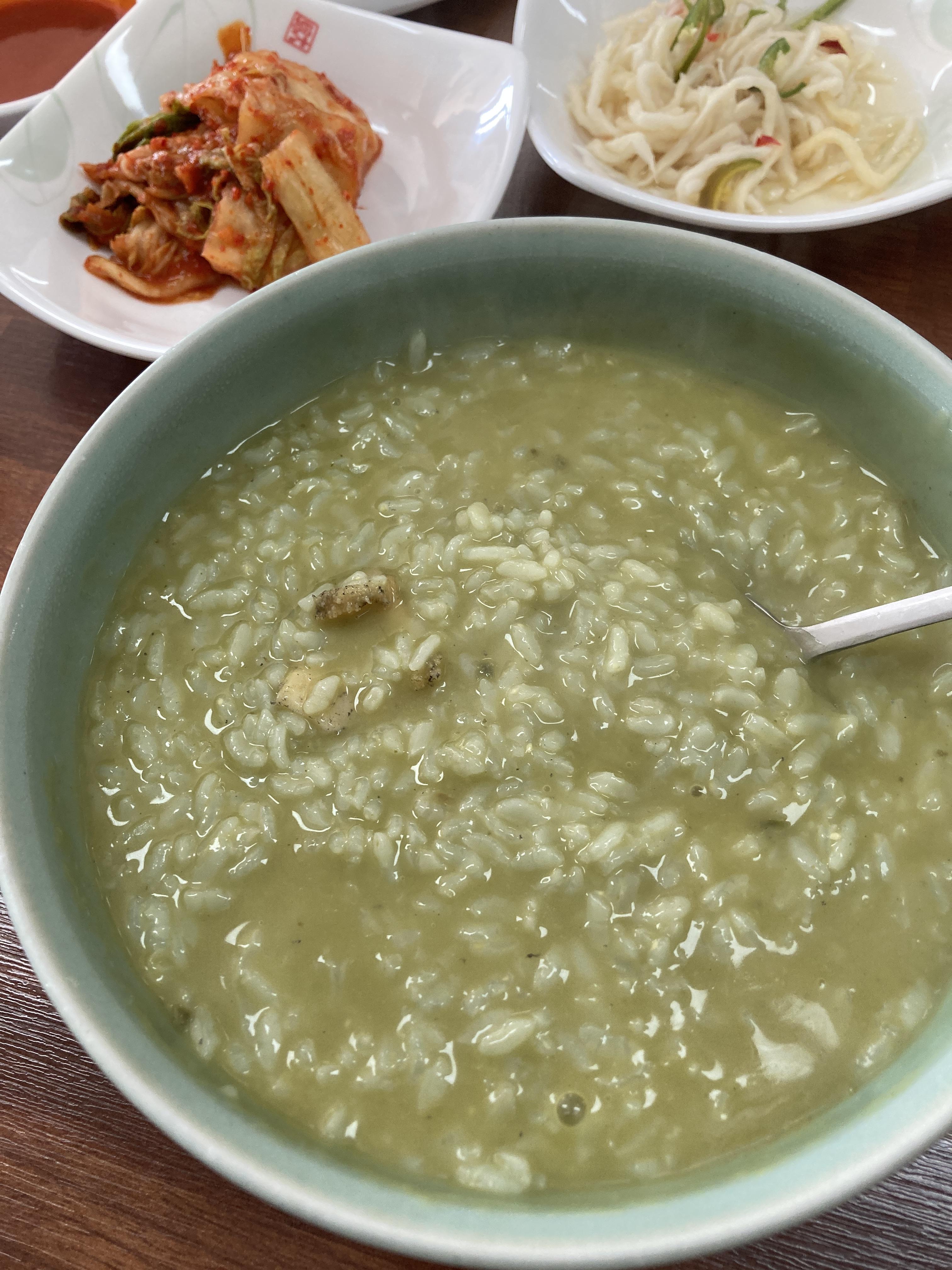 저희는 전복죽과 데친 소라 한접시를 주문하였습니다.
