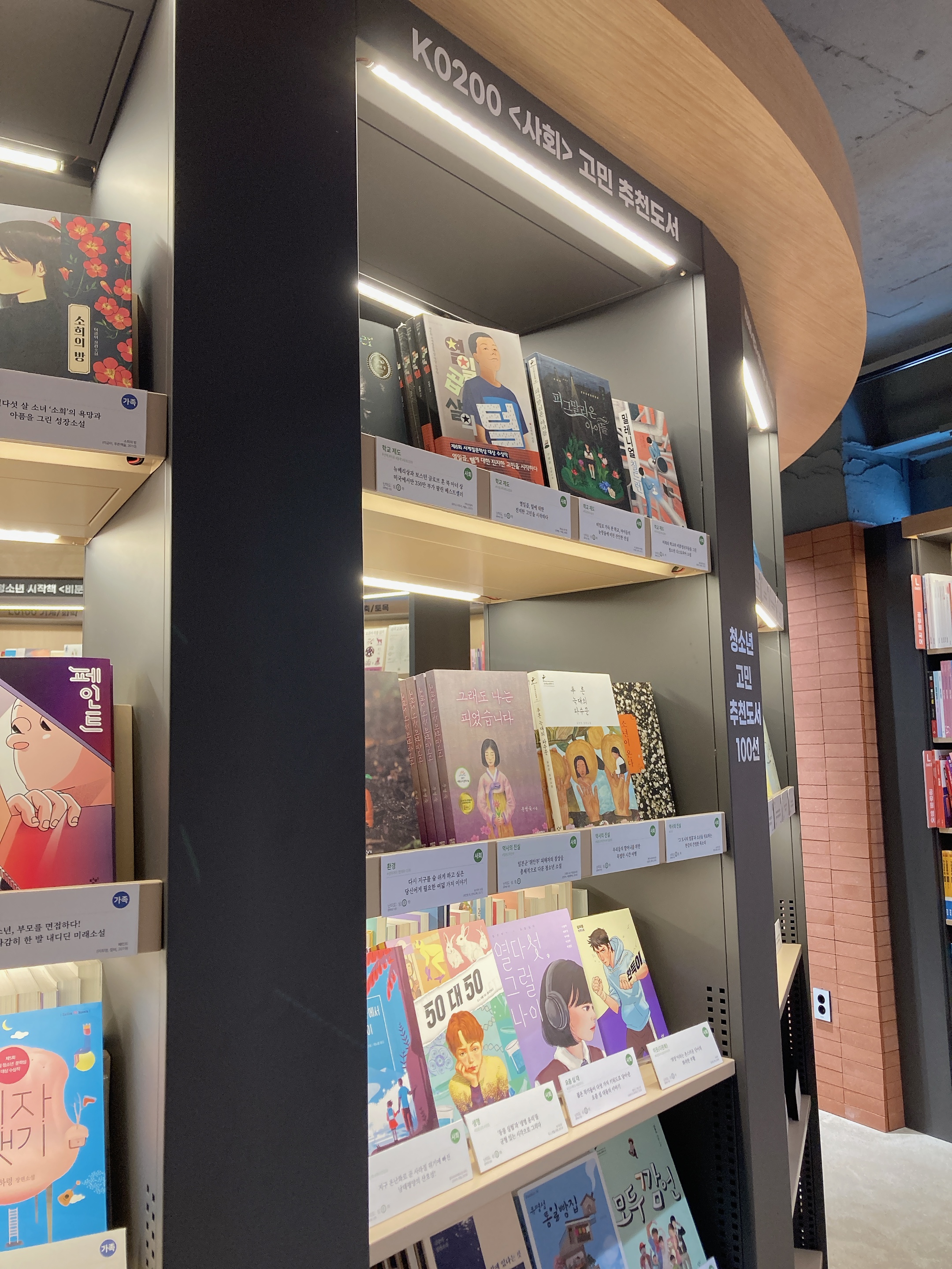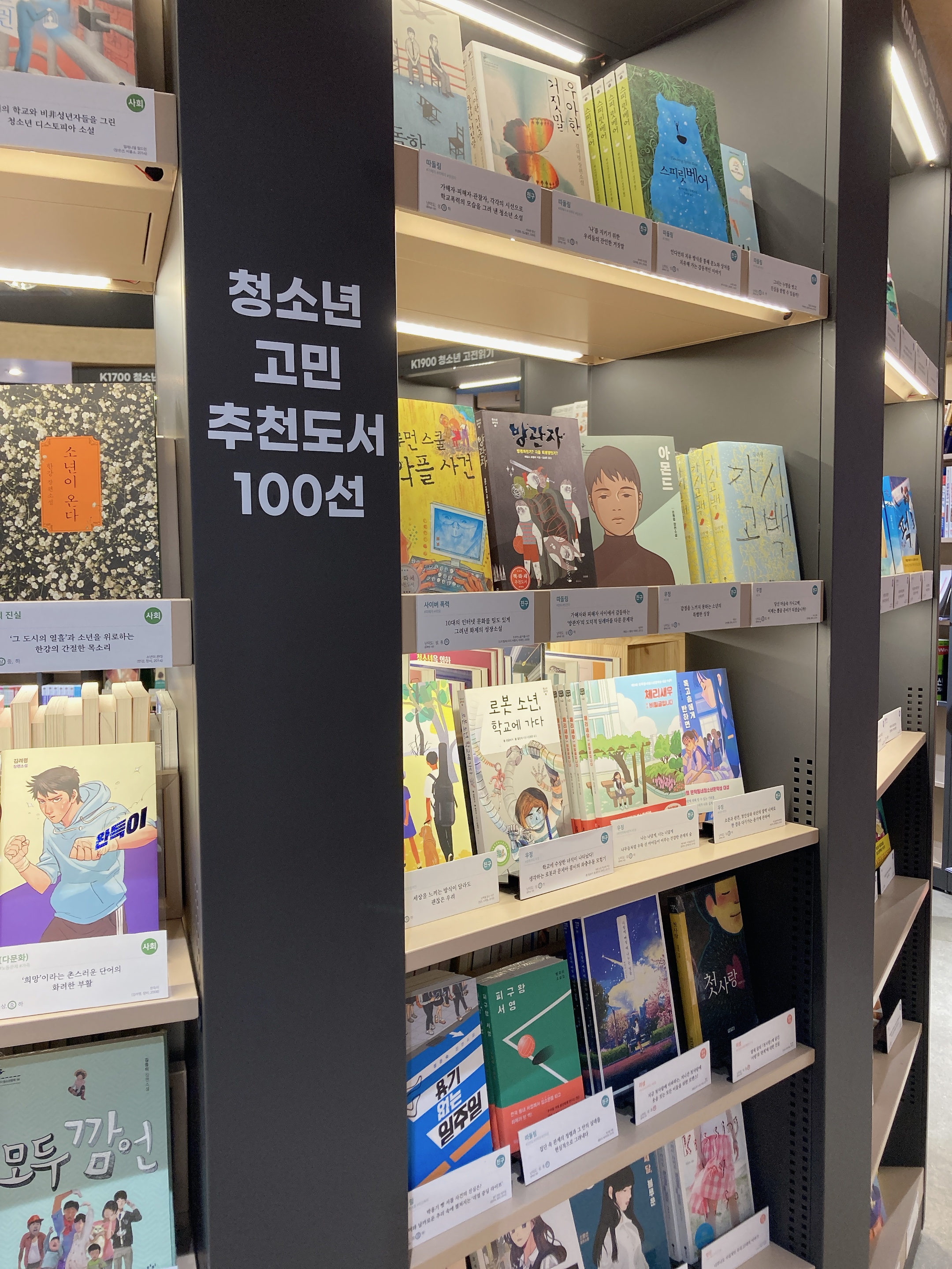 청소년 서가도 마찬가지에요. 추천도서가 모여있는 것도 책을 고르는 시간과 고민을 줄여줘서 도움이 많이 되었는데 심지어 책 밑에 멘트와 분야, 난이도까지 표기되어 있어요!