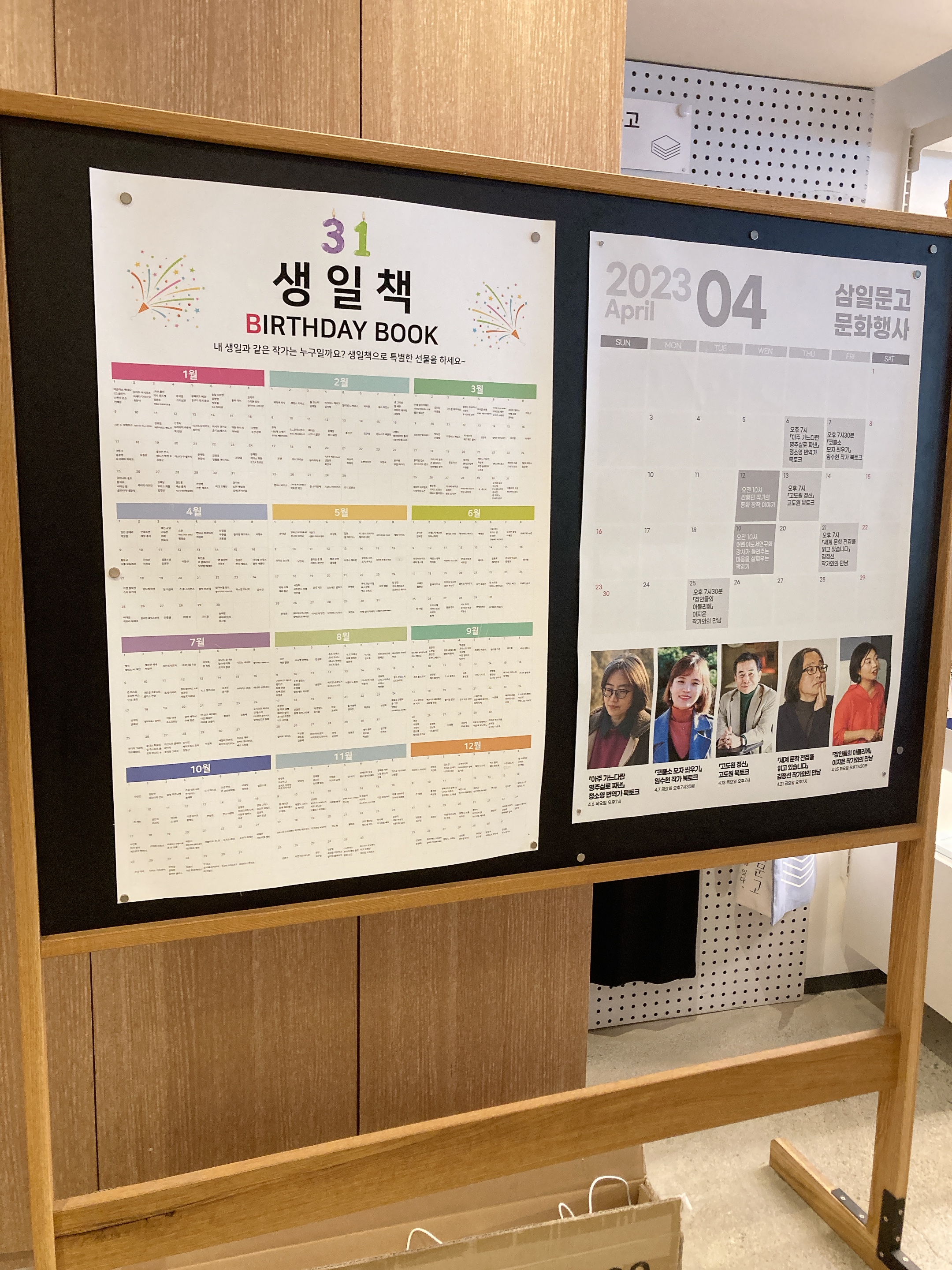 삼일문고에 와서 살펴보면서 놀랐던 부분은 생일책 서가입니다.