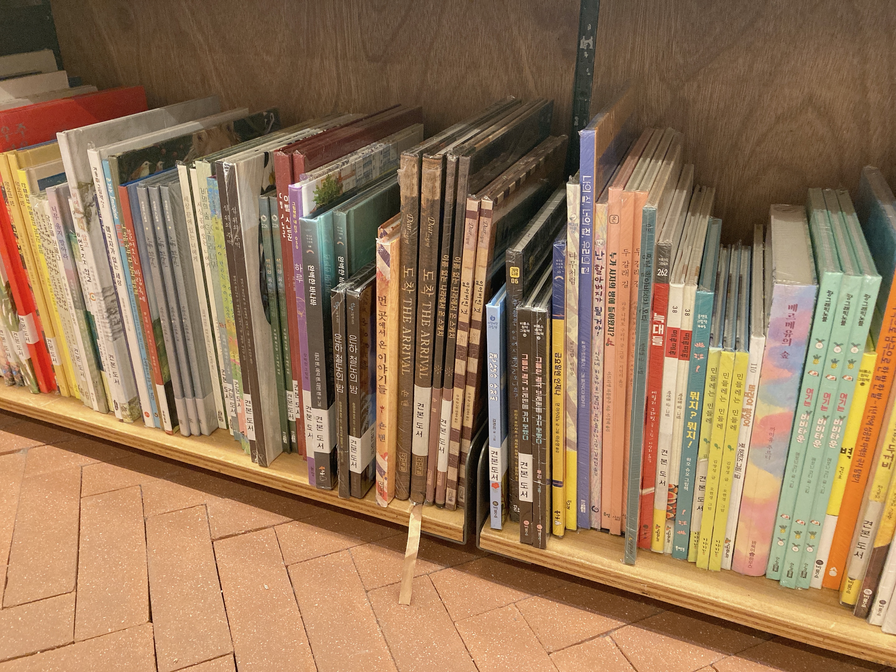 어린이들이 보기 좋게 아래쪽 위주로 책이 잘 보이게 진열해 두었고 잠시 앉아 책을 읽어볼 수 있도록 꾸며져 있습니다. 아이들이 다니기 좋게 공간도 넓게 꾸며져 있고 분위기도 더 포근한 느낌이어서 좋습니다.