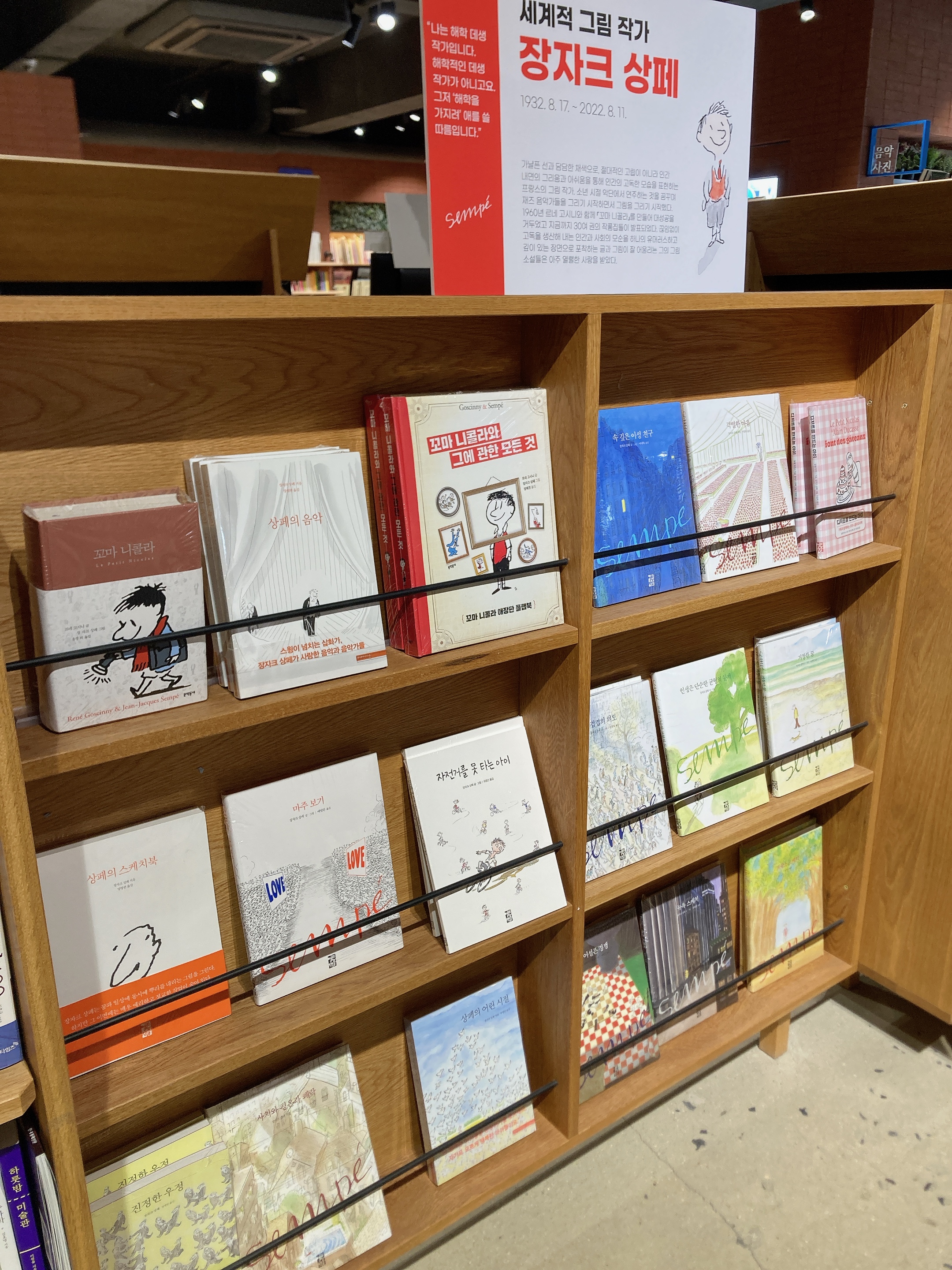 장자크 상페 기획 서가도 있어서 무척 반가웠습니다. 어린 시절 꼬마 니콜라로 접하게 되었던 프랑스 작가인데 명랑하고 유쾌한 그림과 에피소드들로 기억에 남는 작품이었습니다.