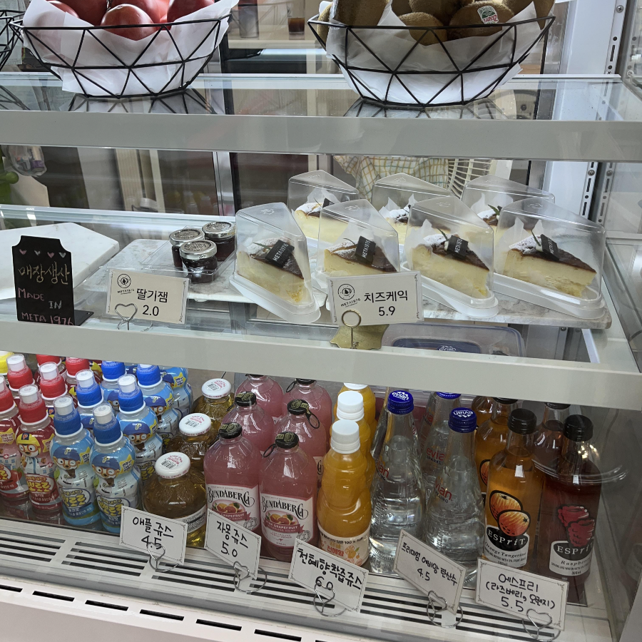 다양한 음료와 약간의 빵도 함께 판매하고 있어요.