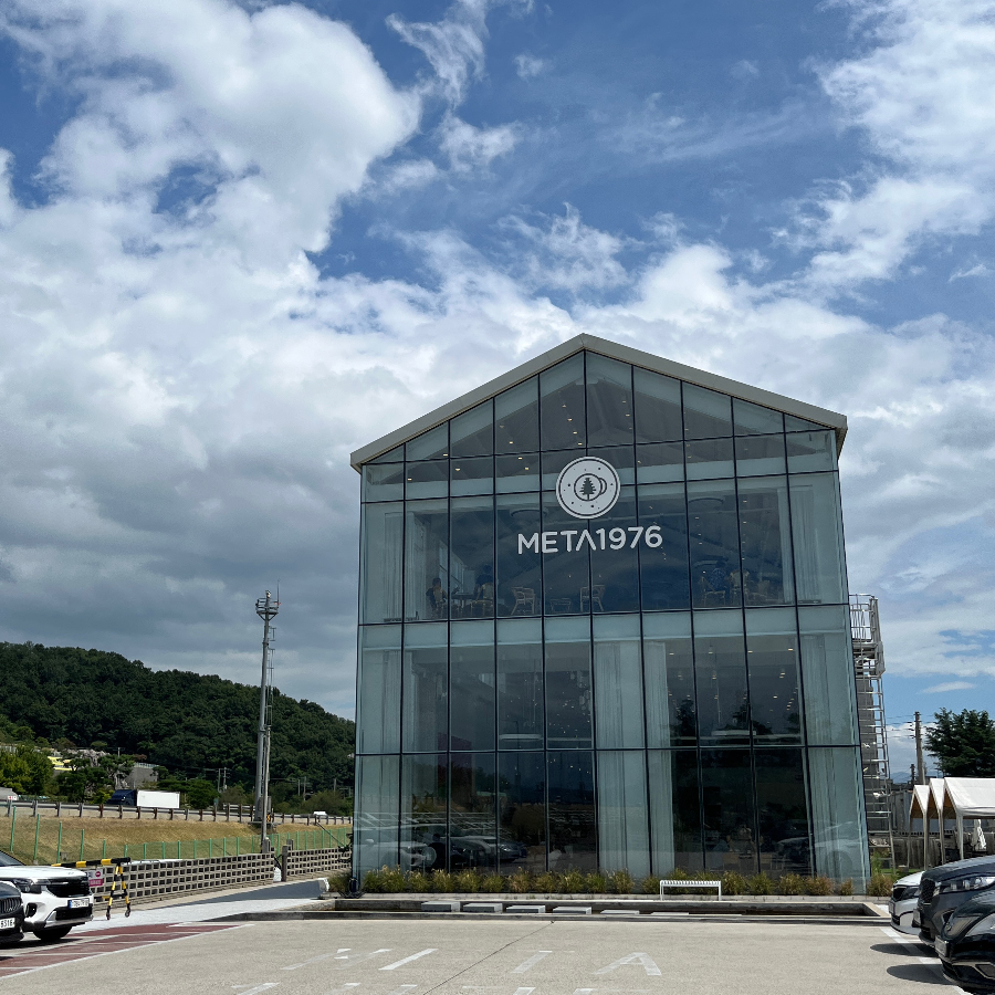 건물이 시원시원하게 공간을 써서 꽤 크게 넓고 공간감이 좋았던 카페 '메타 1976'였어요.