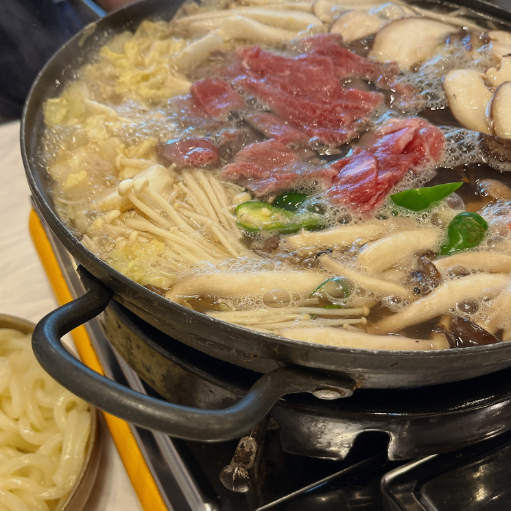 국물은 버섯향이 가득해서 입이 즐거웠습니다. 특히나 다양한 종류의 버섯들이 조화를 이루어 더욱 풍부한 맛을 느낄 수 있었어요.