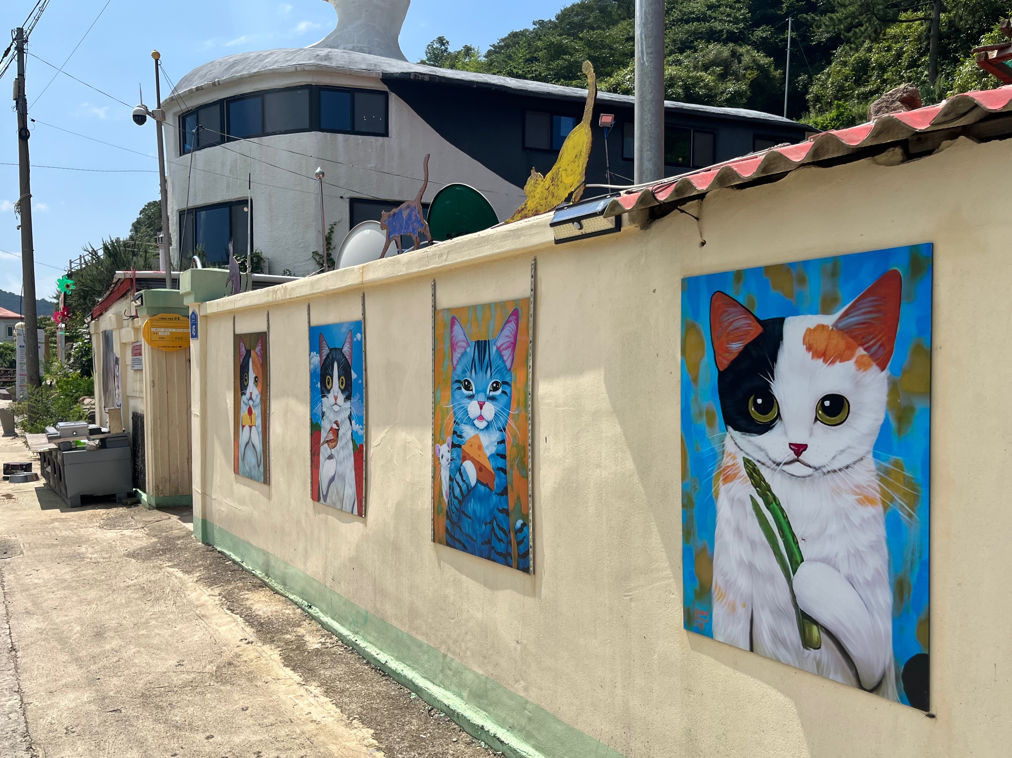 울창한 난대 원림과 섬 속에 꾸며진 꽃 정원도 좋은 볼거리지만, 섬 여기 저기 여유롭게 돌아다니고 쉬는 고양이들도 쑥섬을 특별하게 만들어 줍니다.