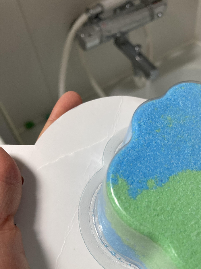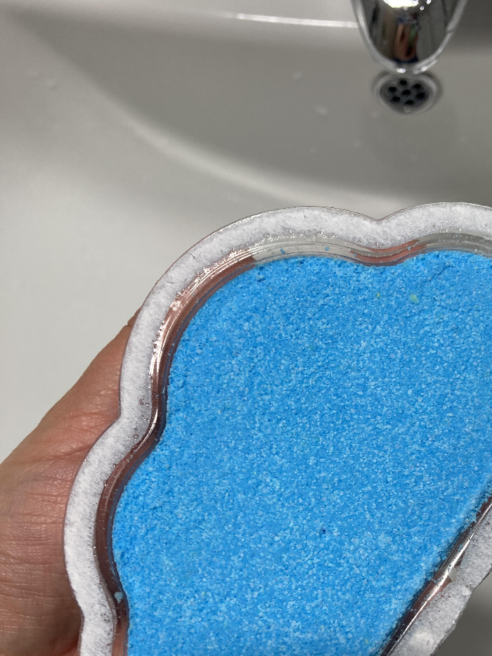 물이 받아지면서 버블바가 녹아갑니다. 물 색은 하늘색이 되는데 제가 사용한 부분이 초록이 거의 없는 조각이라 더욱 그런 것 같습니다.