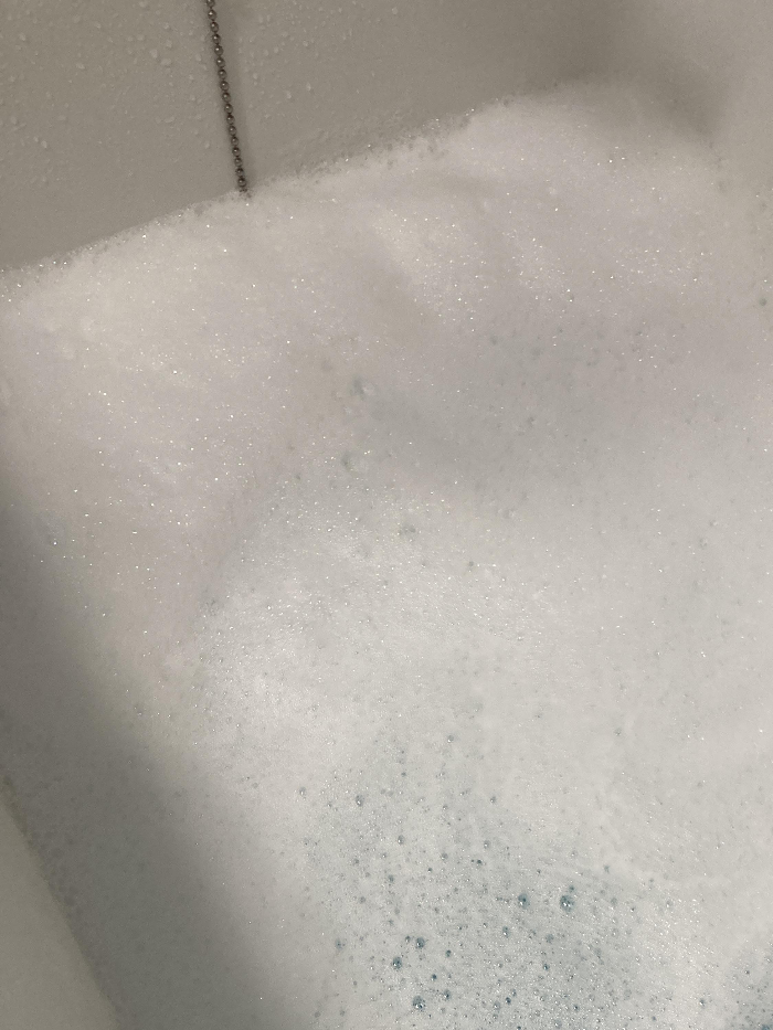 2. 수도꼭지나 샤워기 물을 골고루 분사하면 버블이 더 풍성해집니다. 물을 적당량 채운 후 입욕하세요.
