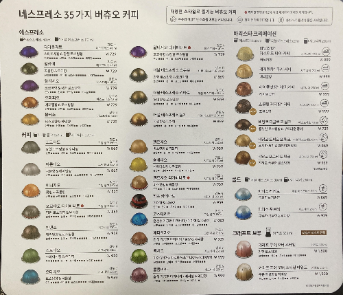 둘 다 에스프레소로 내리는 데 굳이 더 가격이 높은 버츄오를 선택할 것 없이 오리지널로 선택하시는 것도 좋을 것 같습니다. 다만, 가격 차이는 30원 정도뿐이라는 점...