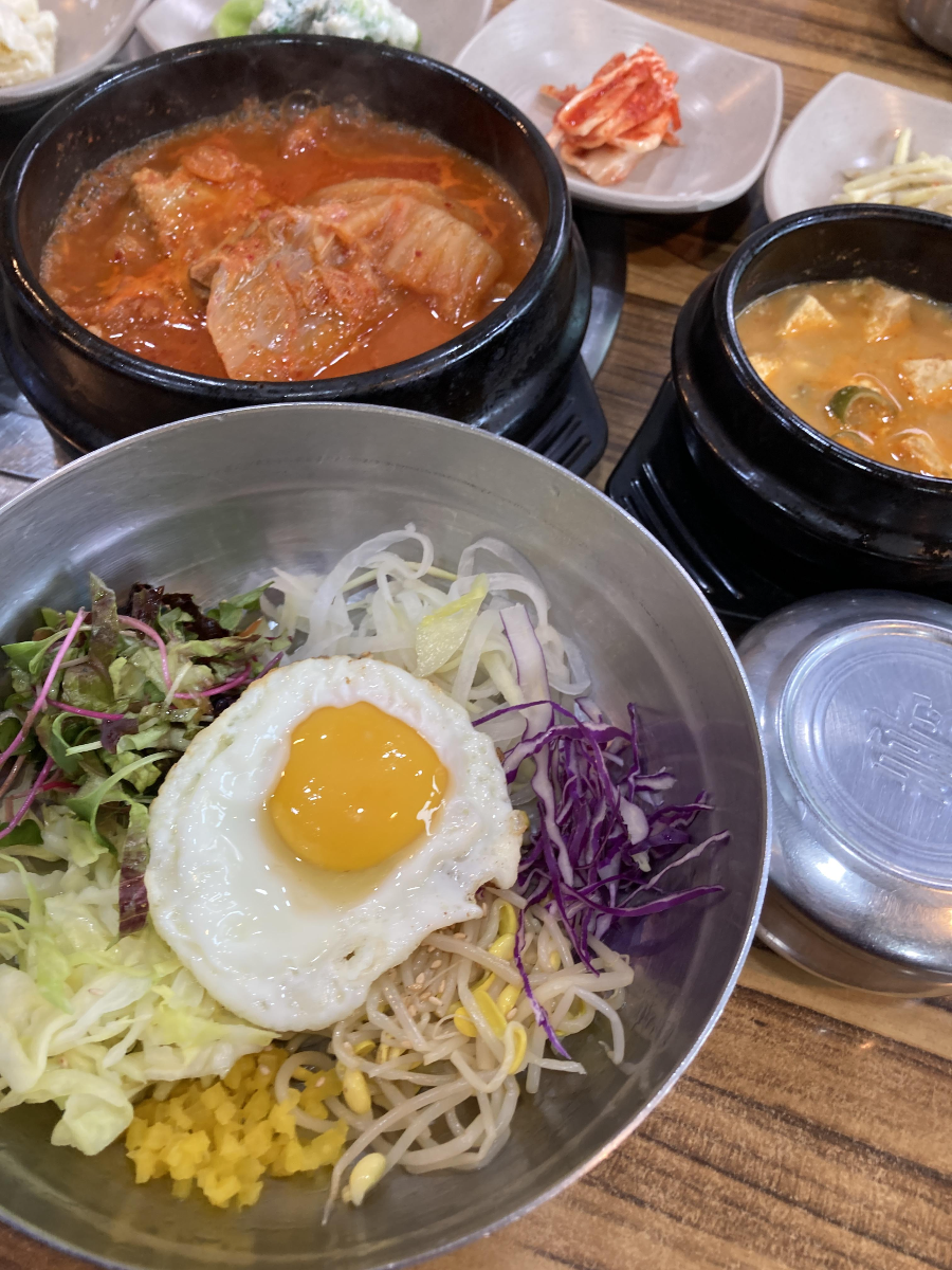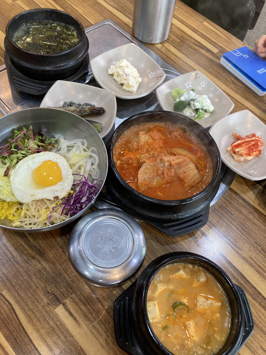 비빔밥1 미역국1 주문했고 밑반찬에 김치찌개랑 청국장이 같이 나옵니다~