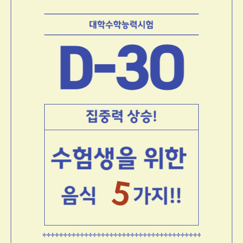 수능을 준비하고 있는 수험생들을 위한 음식 추천! 집중력과 체력을 높여줄 수 있는 음식 다섯 가지를 통해 최고의 컨디션을 만들어 주세요.