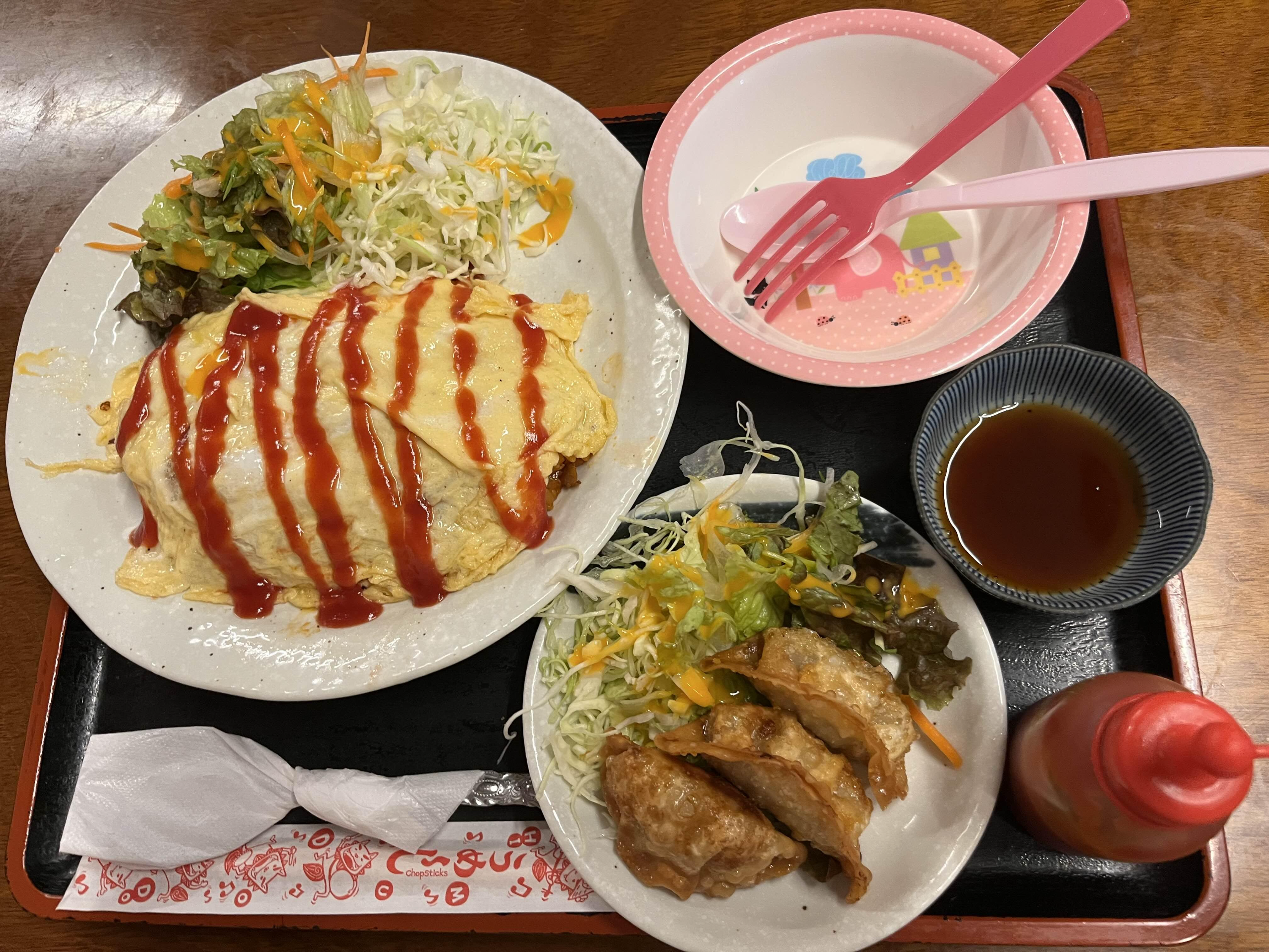 오므라이스에 튀긴 교자를 추가해서 주문했습니다.