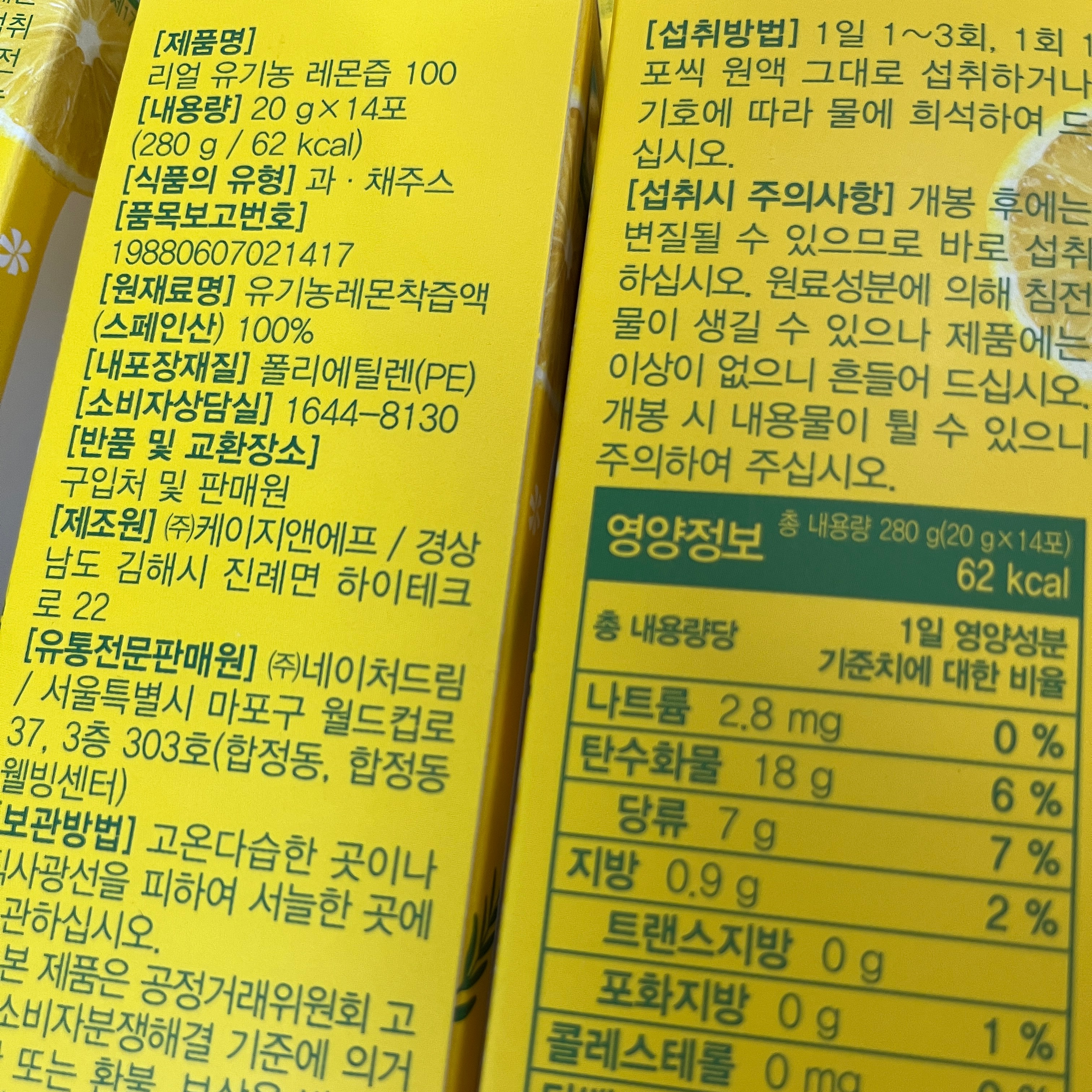 네이처드림 리얼 유기농 레몬즙 100 14p, 280g, 1개 - 레몬주스 | 쿠팡