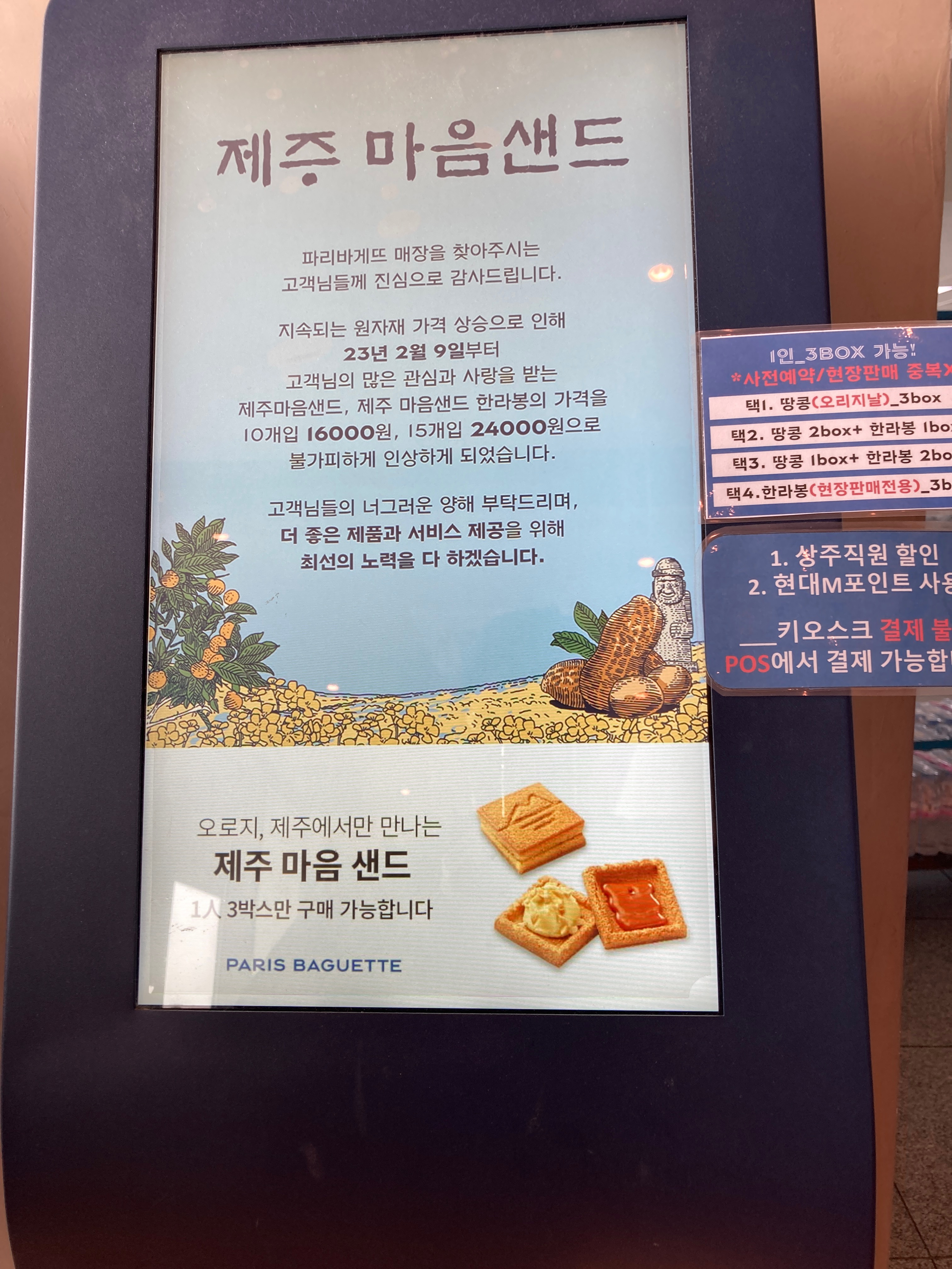보통 마음샌드를 살 때는 여행 끝나면서 나가는 길에 기념으로 사가는데.. 이곳은 렌터카 픽업할 때나 들리기 좋은 공항의 오른쪽 구석에 위치해서 동선이 좋지 않아요. 그래서 상대적으로 사람이 많지 않은 것 같습니다..