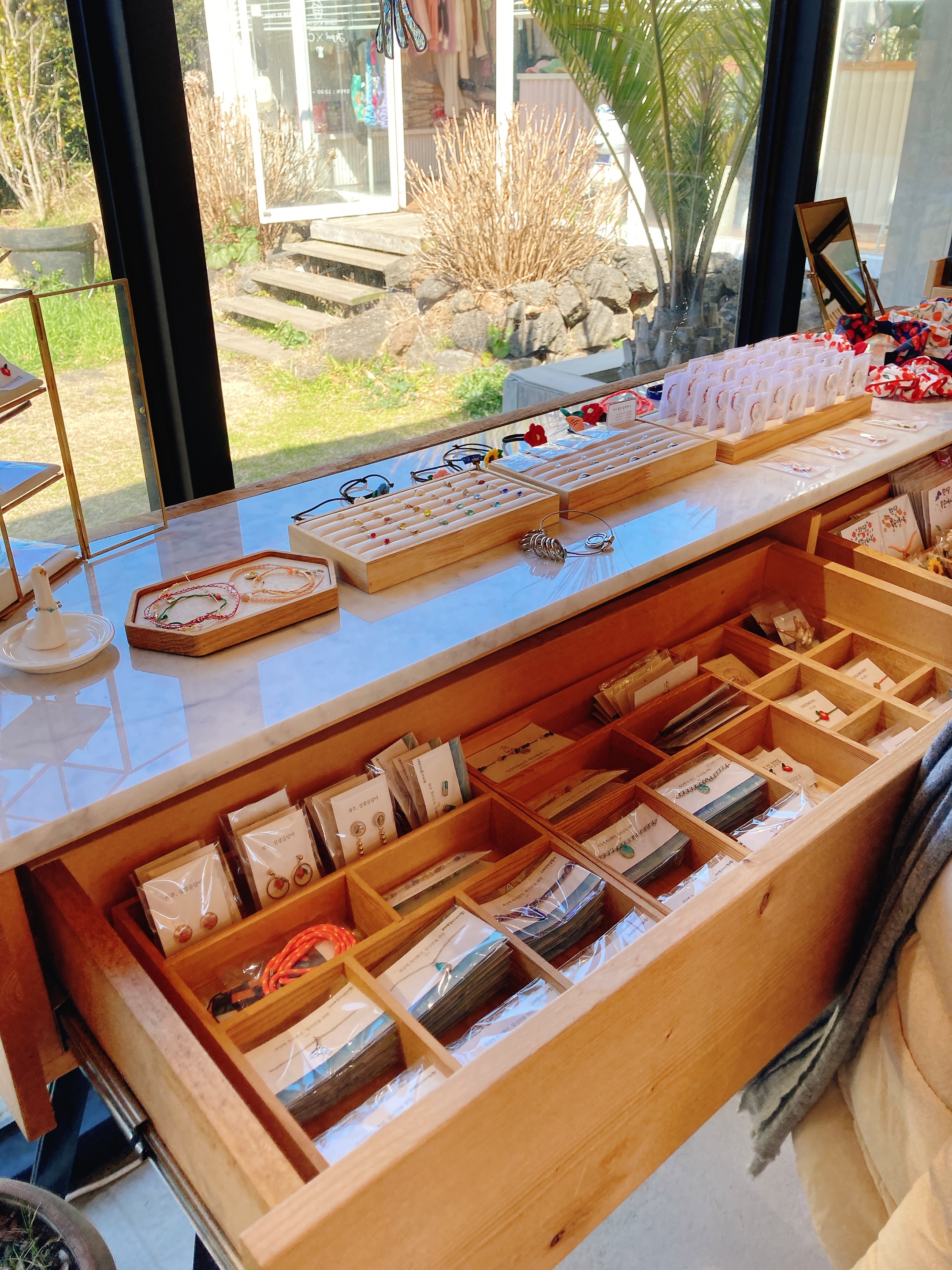 일반 기념품가게에 제주도의 감귤과 한라봉, 우도 땅콩 등의 특산물을 이용한 가공식품류와 주류, 화장품(비누, 크림)류가 주를 차지하고 있다면, 이 곳은 소품들 위주라고 보셔도 좋을 것 같습니다.