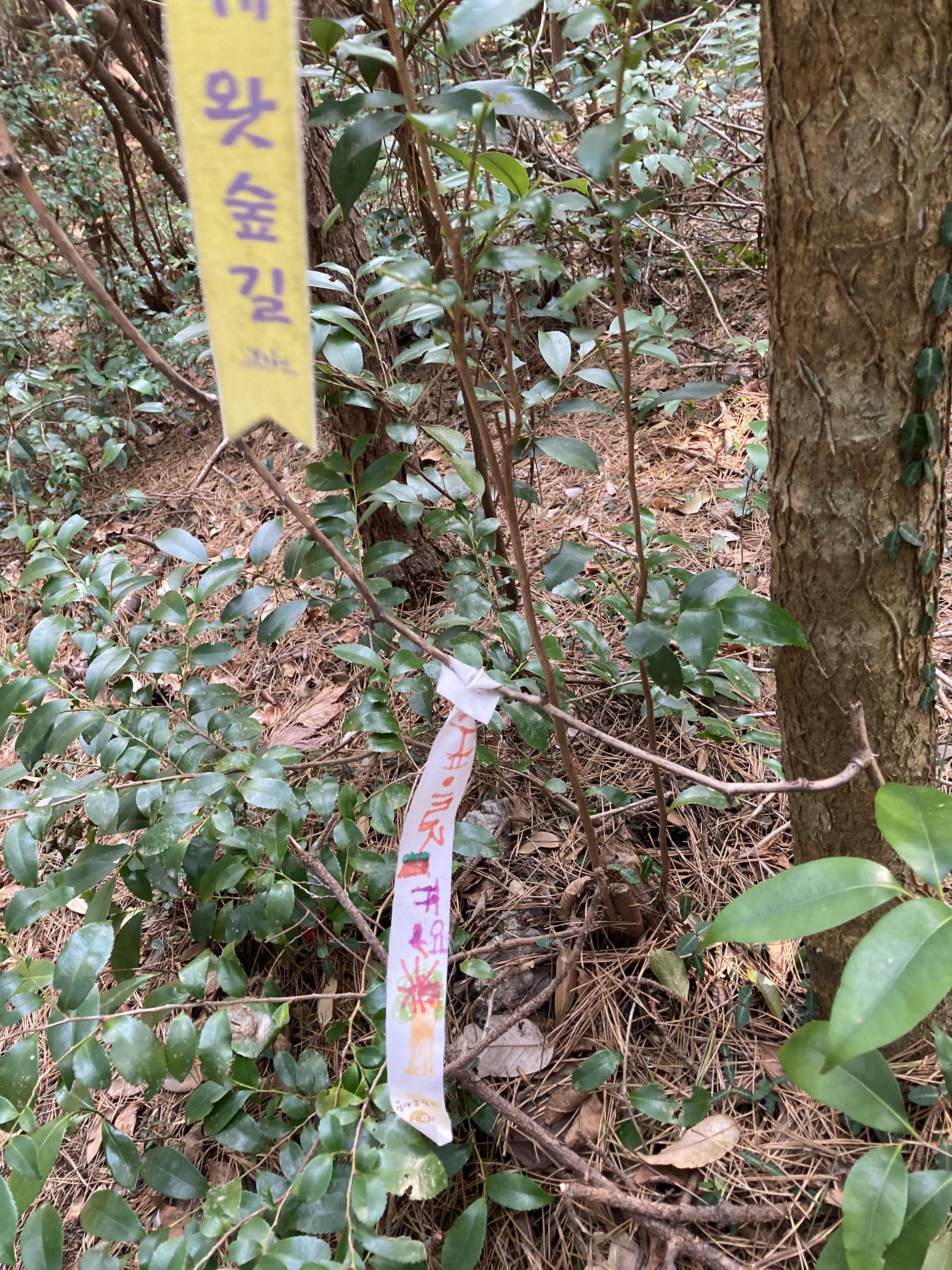 숲 유치원 구간에는 유치원 아이들이 만들어 달아둔 이정표도 있어요.